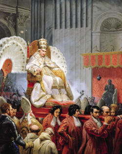 El mismo espíritu de conservación se manifiesta en los monumentos de la antigüedad. Si Austria, Francia, Inglaterra, Rusia o cualquier otro pueblo, fuese dueño de Roma durante cincuenta años, seria muy de temerse que todo se trastornase y perdiese. El genio de cada pueblo, la actividad en unos, la incuria de otros, las colisiones políticas, el espíritu mercantil e industrial, comprometerían rápidamente la existencia de la mayor parte de las ruinas monumentales. Bajo la guarda de la Iglesia nada tienen que temer. El genio de la conservación más atento e inteligente vela por ellas; y Roma permanece un incomparable museo, en donde las costumbres y las cosas de todos los tiempos, cuidadosamente conservadas, se prestan al estudio y a la admiración del mundo entero. De aquí nace involuntariamente una reflexión más alta, y es que, no debe dudarse de que este espíritu de conservación es evidentemente providencial, y la Iglesia que lo manifiesta parece decir a sus hijos: “Si yo pongo tanto cuidado en salvar del olvido y de la destrucción usos y monumentos de un interés secundario, ¿cuál pensáis que debe ser mi solicitud por conservar intacto el sagrado depósito de la fe? Confiad en vuestra Madre; ella no dejará perecer nada de vuestro divino patrimonio”. En la Iglesia, la belleza de los misterios que nos atraen El tiempo había huido, y ya eran más de las nueve; la basílica se había llenado con una multitud inmensa, cuando un cañonazo anunció la salida del Santo Padre. El augusto anciano, después de haber salido de sus habitaciones, bajó por la escalera interior del palacio a una capilla lateral de la iglesia. Bien pronto se miró dominando todas las cabezas un dosel brillante de oro y seda; luego se vieron dos anchos abanicos de gran belleza, glorioso recuerdo de la magnificencia imperial; y bajo aquel dosel, sentado en la silla gestatoria, brillante de oro y púrpura, al vicario de Jesucristo con la tiara en la cabeza, glorioso emblema de su triple dignidad de padre, de rey y de pontífice.1 Marchaba majestuosamente, llevado sobre las espaldas de los oficiales de su casa, vestidos con el gran traje rojo. El Sacro Colegio abría la marcha, la guardia noble formaba la valla y seguía el cortejo que se detuvo a nuestra vista detrás de la Confesión de San Pedro. Después de haber depositado la tiara y hecho una corta adoración al pie del altar, subió el soberano pontífice a un trono colocado a la derecha; entonó la Tercia, tomó la mitra y se sentó. ¿Por qué la mitra sustituye a la tiara? Con este misterioso cambio comenzó para mí una serie de enigmas, cuya solución atormentó mucho mi espíritu. Comprendí pronto, que si el Santo Padre era rey en la silla gestatoria, en el altar no era más que pontífice, y la sustitución de la mitra por la tiara se explicó por sí misma. Pero dos nuevos jeroglíficos me embarazaron de otro modo; uno que veía y otro que no veía. El Santo Padre, el obispo de los obispos, no llevaba báculo; tuve a bien buscar aquel atributo de la carga pastoral y no figuraba de ningún modo entre las insignias: ¿por qué es esto? Primer enigma. Dos prelados domésticos precedían al Santo Padre, y llevaban el uno una soberbia espada con empuñadura de oro, stocco; el otro un sombrero ducal, cimiero, de terciopelo carmesí, con armiño, adornado de perlas y rodeado de un cordón de oro con una paloma en el centro, símbolo del Espíritu Santo; la espada y el sombrero fueron depositados en un rincón del altar, y allí quedaron durante la misa: ¿por qué todo esto? Segundo enigma. Busqué cerca de mi algún Edipo capaz de explicarme este doble misterio, pero mis esfuerzos fueron vanos. Comenzó la misa, continuó, acabó, y aquel sombrero, aquella espada, aquel báculo, no me salían de la cabeza. Confieso mi distracción; para expiarla me condené a largas investigaciones sobre la causa que la había producido, y con el fin de evitar el mismo trabajo a los que vayan allá después de mí, voy a dar la solución del doble enigma. En nombre de san Pedro, una resurrección